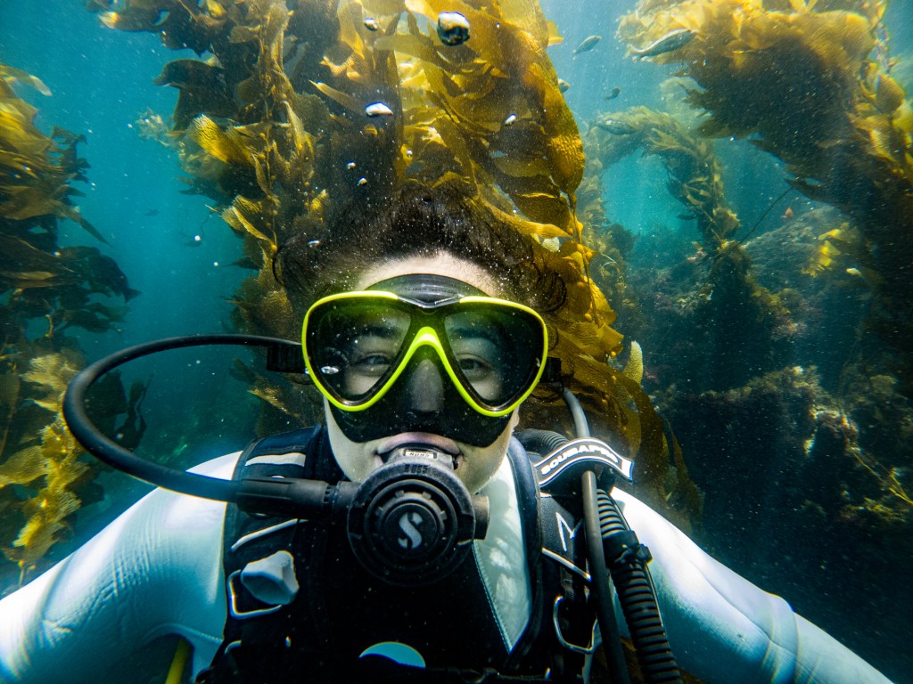 Over and under shots as well as your underwater head shots. Great as a gift, or for Dive Pro’s needing a professional image. Since we are in the water already, we will enjoy a fun dive in the kelp forest as well.